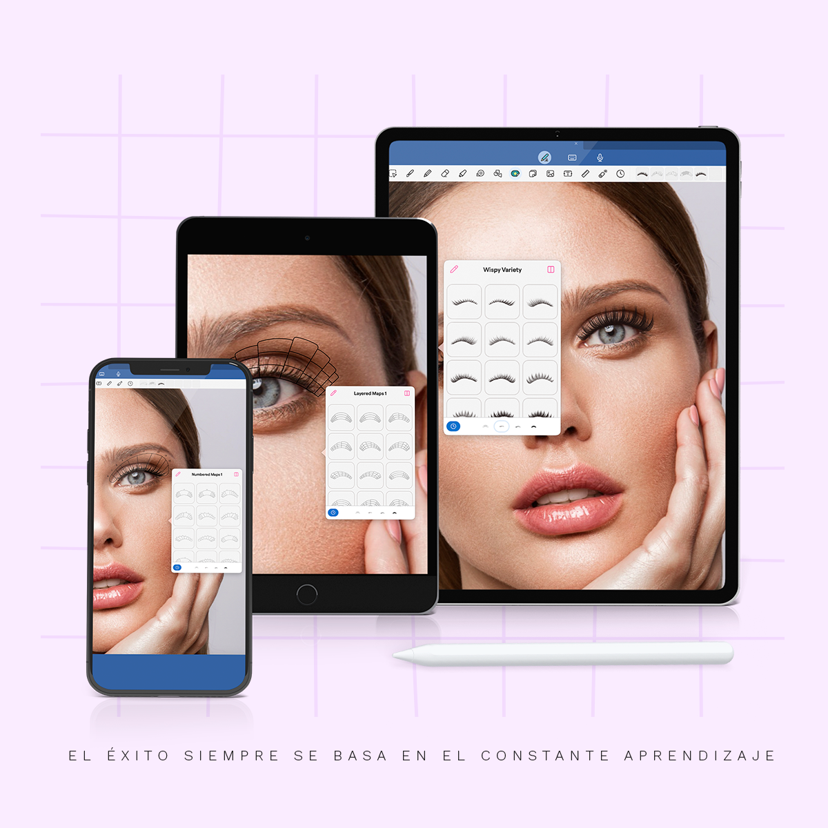Estas superposiciones digitales te permiten mapear estilos de pestañas directamente sobre las fotos de tus clientes o plantillas de capacitación, lo que facilita mostrar diferentes looks, planificar diseños personalizados y comunicar tu experiencia con claridad.